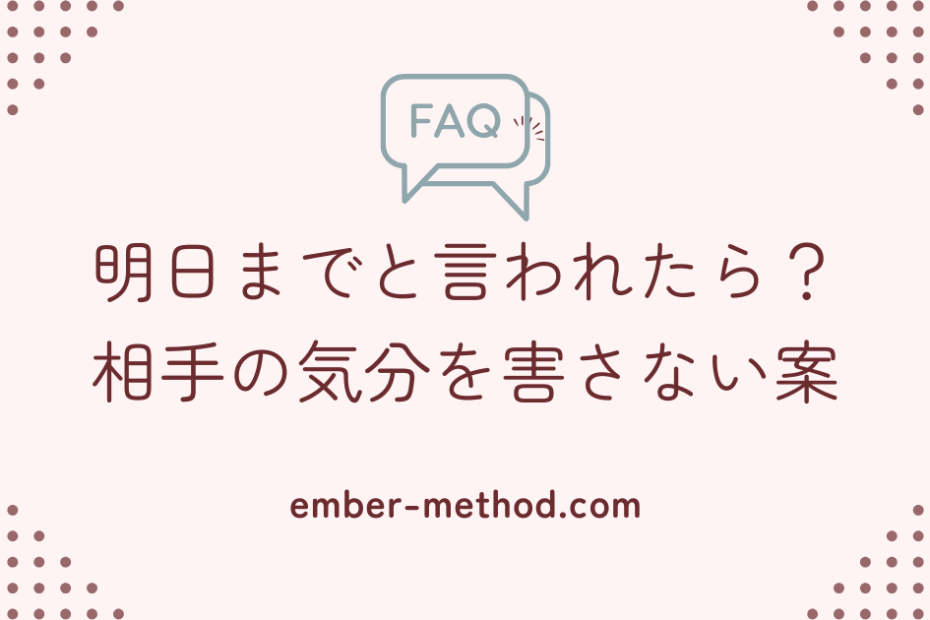 「明日までお願い」と言われて、内心「無理」と思っていませんか 夕方、突然「明日までにこれお願いできる?」と頼まれた瞬間、頭の中は真っ白。今日中に終わらせなきゃいけない仕事があるのに、どうすればいいのか。断りたいけど、嫌な… 「明日までにお願い」と言われた時の断り方|好感度を下げずに断る例文集