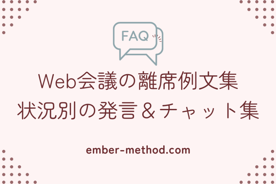 Web会議中に席を外したい瞬間、ありませんか? Web会議の最中に、急にトイレに行きたくなった。宅配便のチャイムが鳴った。子どもが泣き出した。在宅勤務が増えた今、こうした「席を外したい瞬間」は誰にでも訪れます。 でも「何… Web会議で『ちょっと席外します』の言い方|状況別の例文とチャット文面集