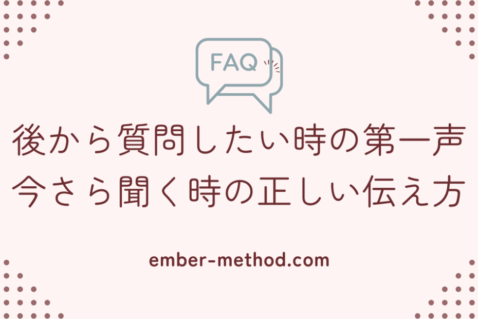今さら聞くのが怖い…その気持ち、わかります 会議中に確認のタイミングを逃した。メールに返信した後で「あれ、よく分かってない」と気づいた。でも今さら聞いたら「ちゃんと聞いてなかったの?」と思われそうで、聞き出せない。そんな… 仕事で聞くタイミング逃した!今さら聞く時のそのまま使える例文集