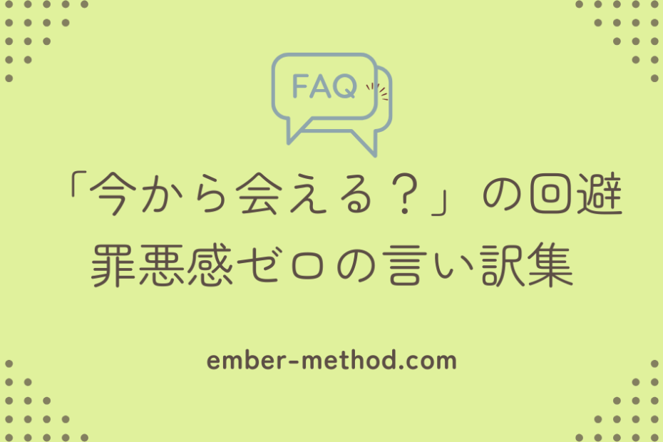 「今から会える?」暇だけど断りたい時の罪悪感 友達から突然LINEで「今から会える?」と来た瞬間、頭の中は混乱。今日は家でダラダラしたいだけなのに、「暇なのに断ったら、私との優先順位が低いって思われるかな」と不安になりま… 友達から「今から会える?」の断り方|暇でも上手く断る例文集