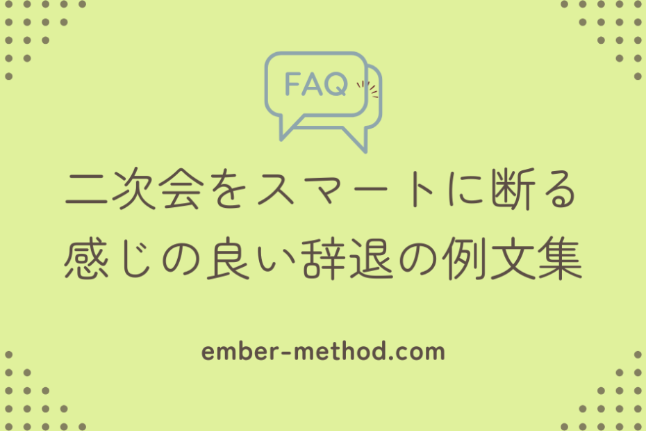一次会で十分頑張った。でも二次会を断ると「付き合い悪い」と思われそうで怖い 一次会で2時間話して、笑顔で乾杯もして、もう十分場を盛り上げた。なのに「二次会行こう!」と言われた瞬間、心の中で「もう無理…」と思っていませんか… 二次会の断り方例文集|一次会で帰っても付き合い悪いと思われないコツ